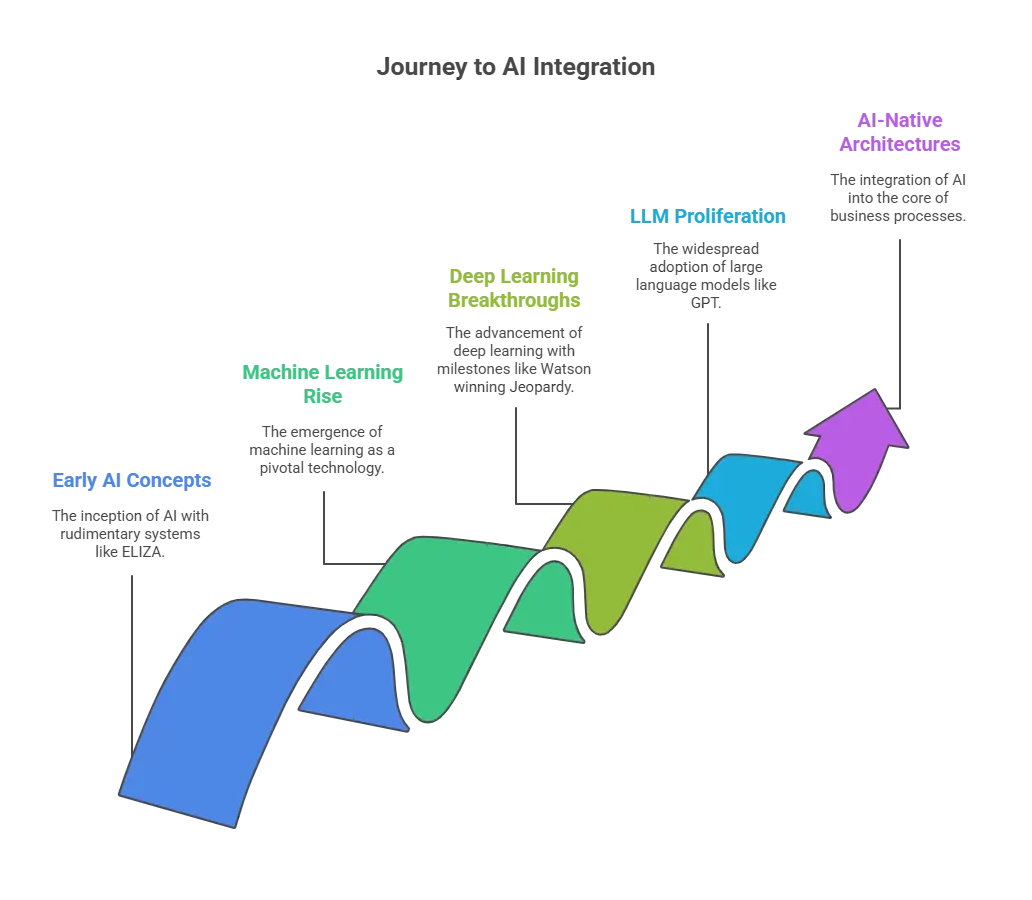 The journey of AI in the corporate world has been marked by distinct phases. Its origins trace back to the mid-20th century with early concepts and rudimentary systems like the ELIZA chatbot, which demonstrated the potential for human-computer interaction. However, these early attempts often led to "AI winters" as the technology failed to meet inflated expectations. The concept of AI largely remained in academic and research circles until the late 20th century.