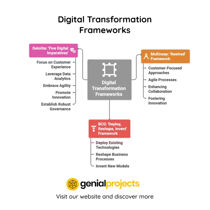 Various frameworks provide structured guidance for organizations embarking on digital transformation initiatives. By following these established methods, businesses can navigate complexity more effectively while maximizing their chances for sustainable growth.